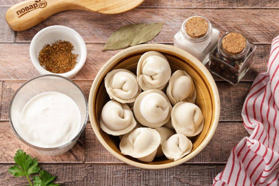Подготовьте все ингредиенты по списку. Пельмени конечно лучше взять домашние, получится намного вкуснее, но если такой возможности нет, берите те, что больше любите.