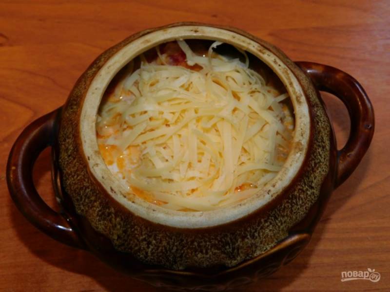 Посыпьте тертым сыром и, накрыв крышкой, поставьте в духовку, разогретую до 200 градусов минут на 20-30.