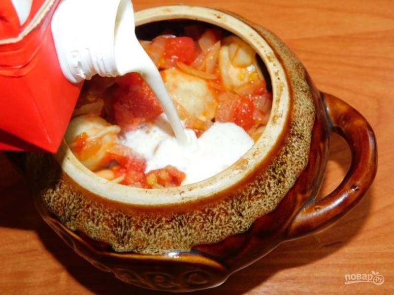 Пельмени в горшочках со сметаной