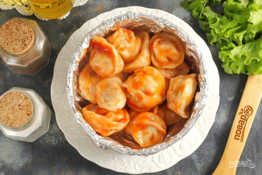 Если у вас есть в наличии термос для еды или фольгированная форма с крышкой, то выложите в нее приготовленное блюдо. Сразу же закройте его крышкой. В таком виде пельмени можно брать с собой на пикник, в поход. Тепло от горячих пельменей сконденсируется внутри термоса или формы и они как раз дотомятся до готовности. Поэтому очень важно их не переварить, иначе они потом превратятся в кашу!