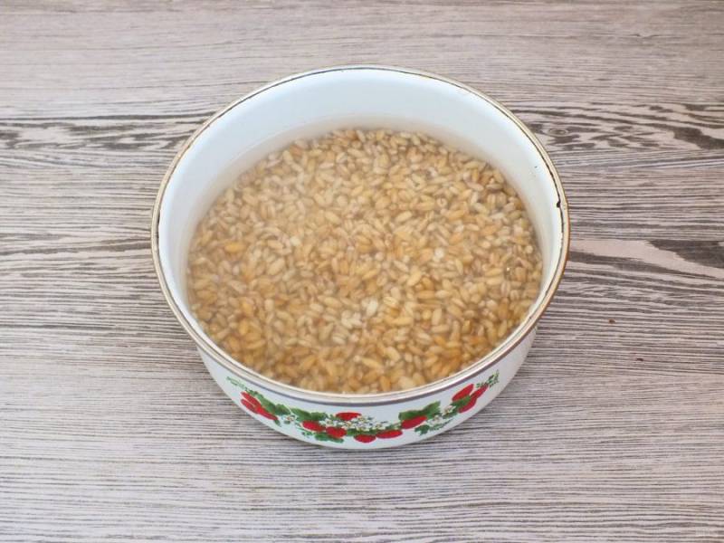 С вечера подготовьте перловую крупу. Промойте в нескольких водах. Залейте 3 ст. воды и оставьте на ночь. С утра воду слейте, еще раз промойте.