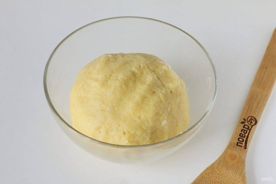 Перемешайте все ложкой, а затем руками замесите тесто и соберите его в шар. Уберите в холодильник на 15 минут, завернув в пищевую пленку.