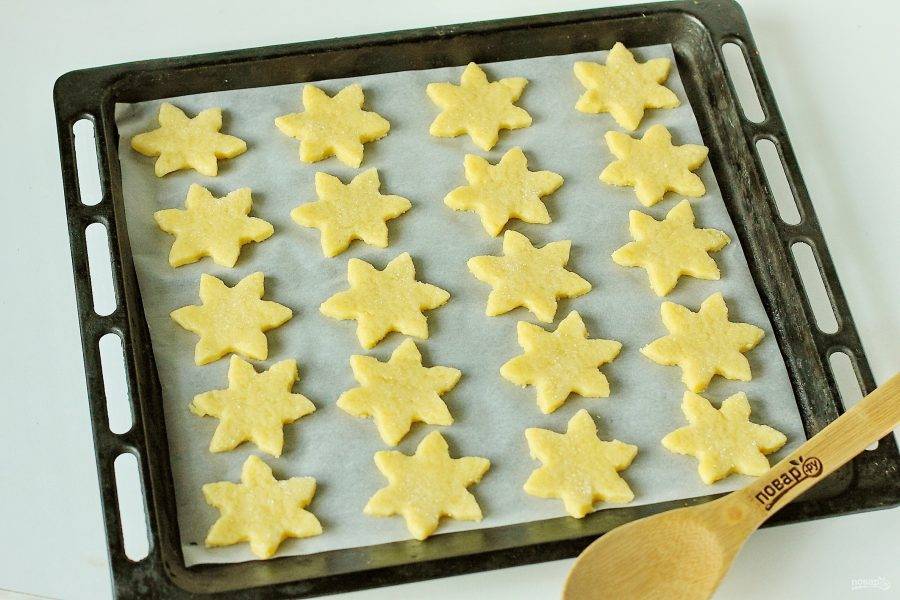 Переложите печенье на противень застеленный пергаментом и выпекайте в духовке при температуре 180 градусов около 15 минут.
