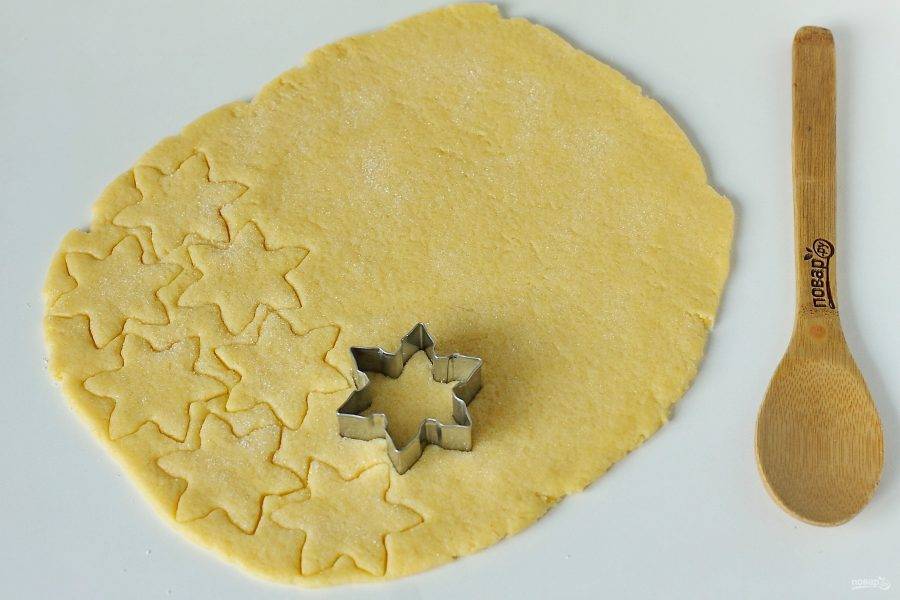 При помощи специальных формочек или обычным стаканом вырежьте заготовки.