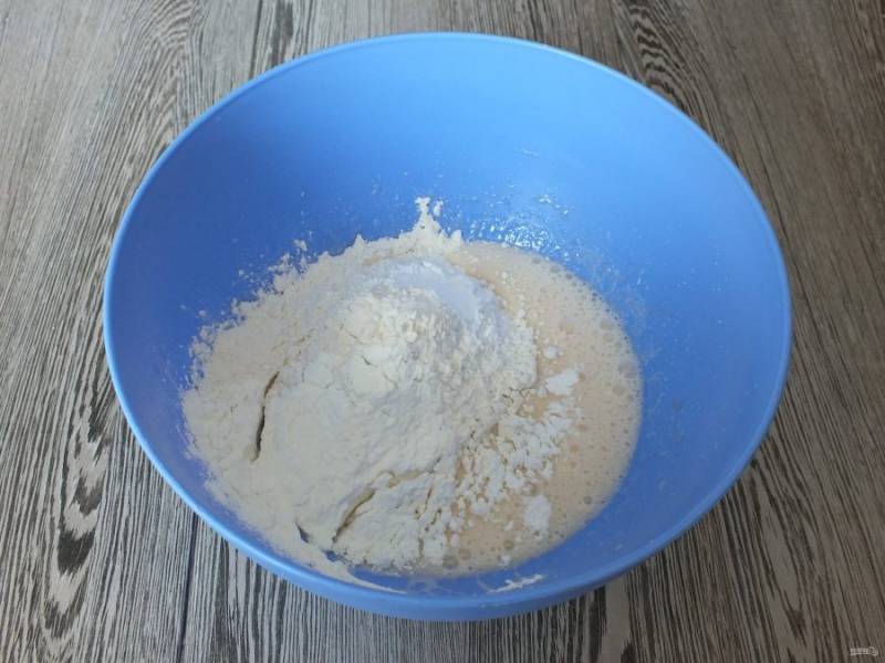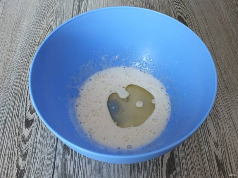 Добавьте растительное масло в яичную массу. Еще раз взбейте.