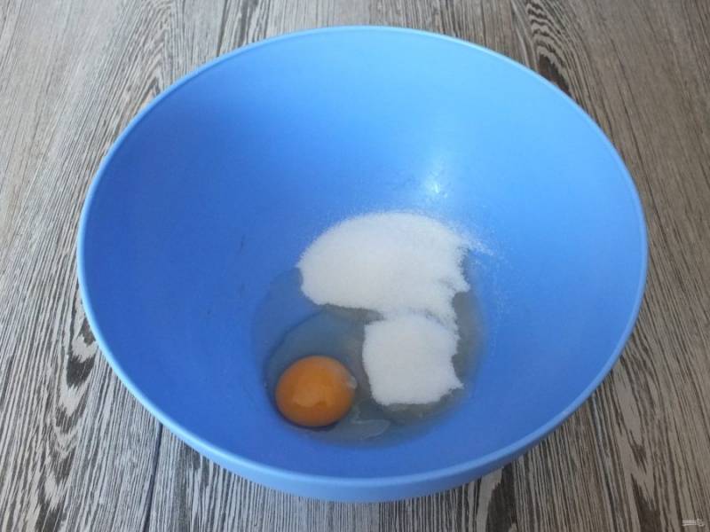 Яйцо с сахаром и щепоткой соли взбейте в пену.