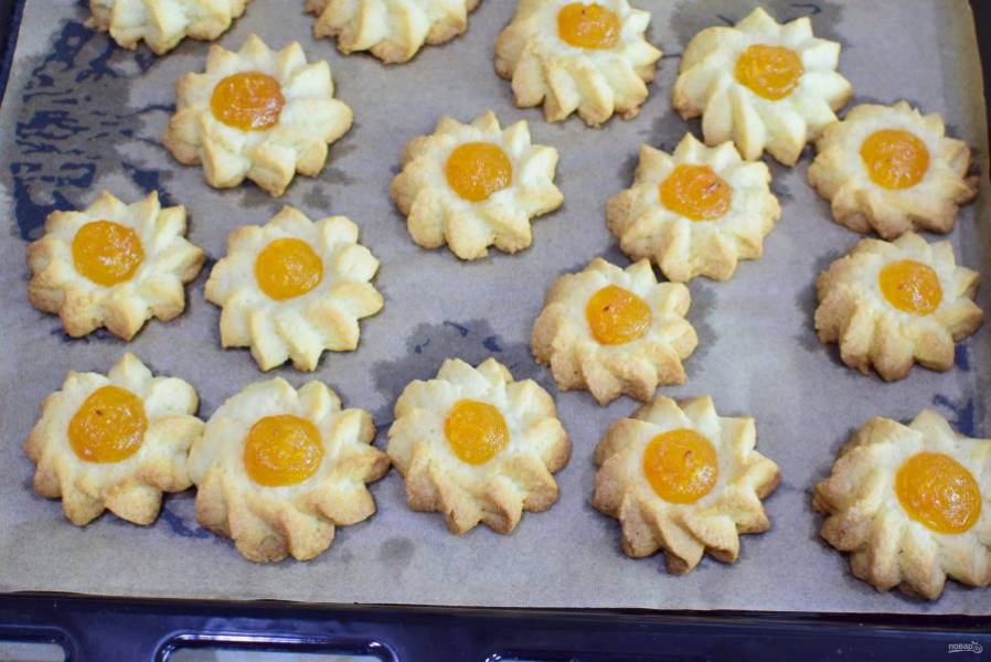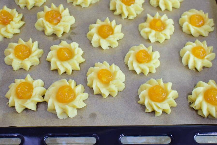 В центр выложите повидло. Выпекайте печенье при 180 градусах, примерно 20 минут.