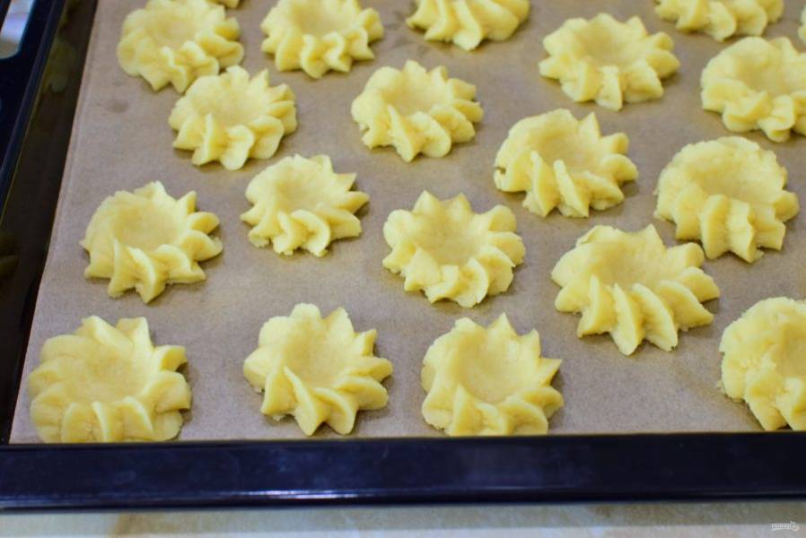 Песочное печенье может быть любой формы. Можно отсадить тесто из кондитерского мешка с насадкой.