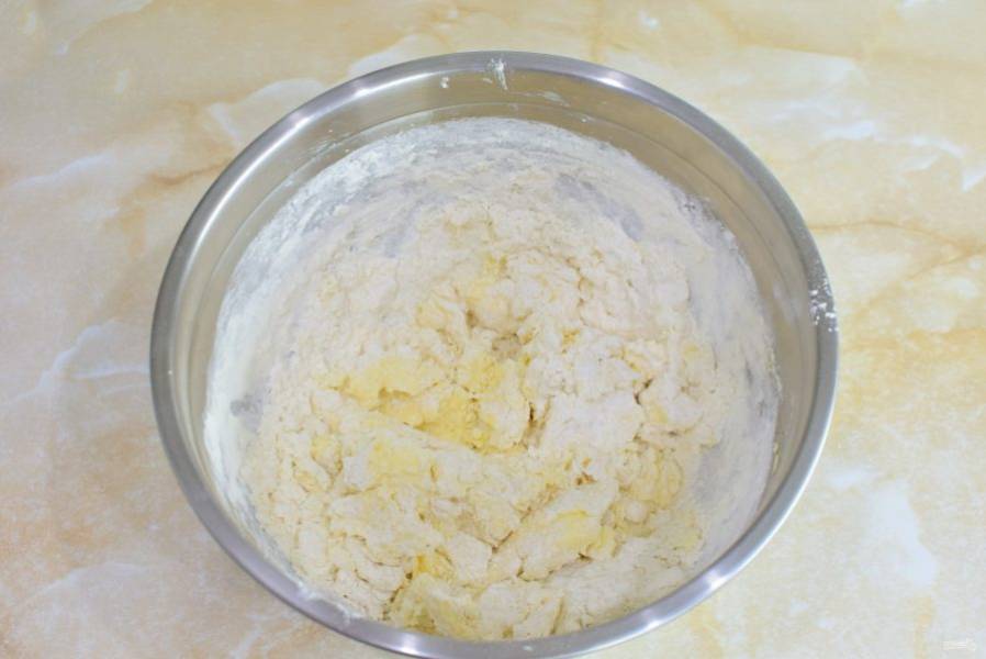 В количестве муки ориентируйтесь по консистенции готового теста. Как только оно собралось в комок, больше муку не добавляйте.