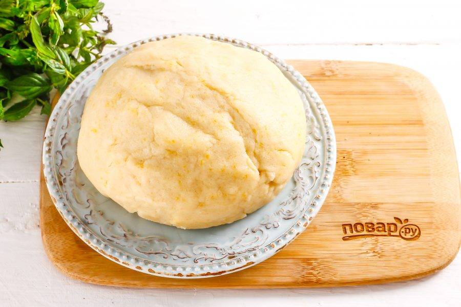 Колобок теста охладите в холодильнике примерно 15-20 минут, накрыв пищевой пленкой.