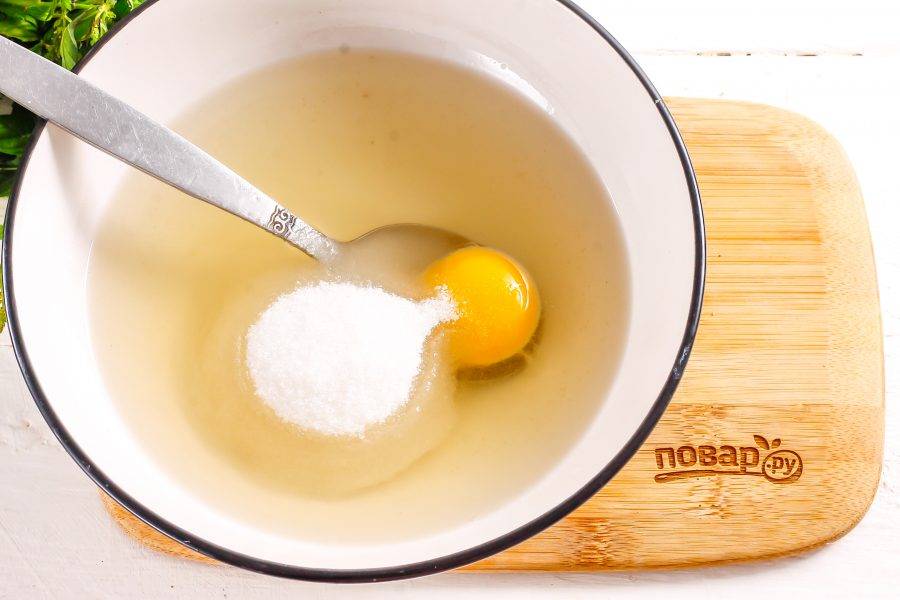 Растопите смалец в микроволновке или на водяной бане и слегка остудите. Выложите в него желток куриного яйца, всыпьте сахар и соль, тщательно размешайте.