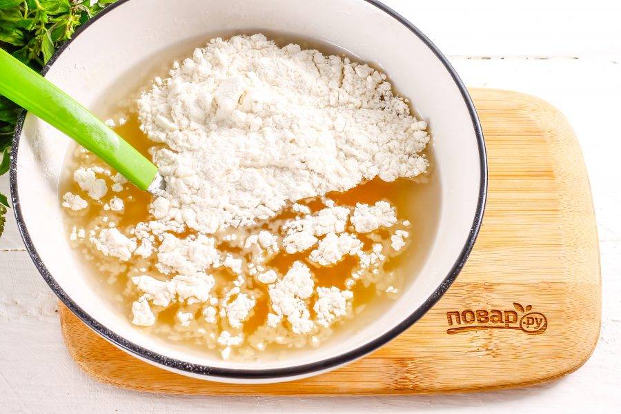 Всыпьте пшеничную муку высшего сорта и замесите песочное тесто.