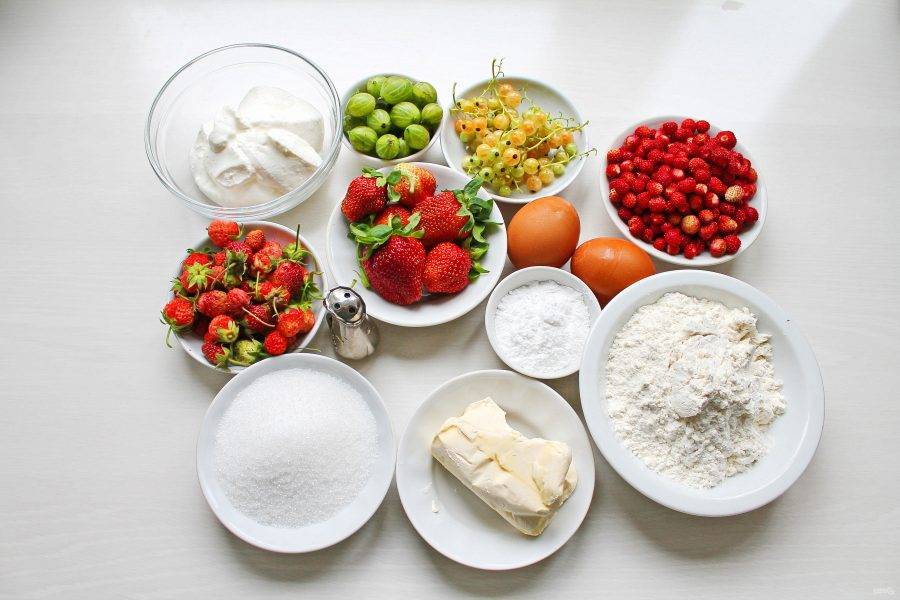 Подготовьте все необходимые ингредиенты для приготовления пирога.