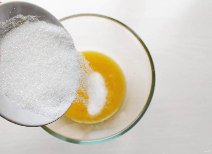 - Сахар 100 грамм 50 грамм — в тесто, 50 грамм — в заливку