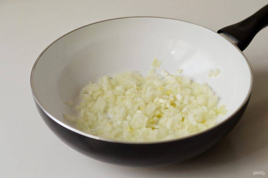 Лук мелко порубите и обжарьте до мягкости.