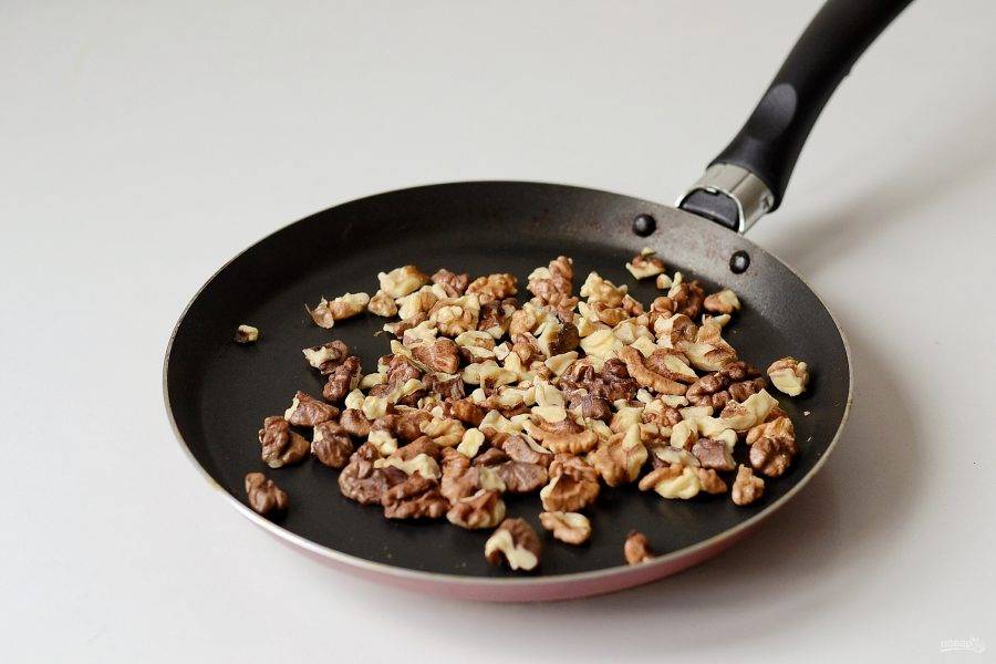 Грецкие орехи подсушите на сухой сковороде.