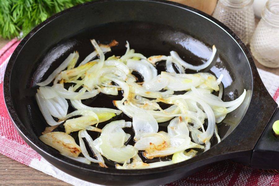 На оставшемся масле обжарьте до золотистого цвета лук.