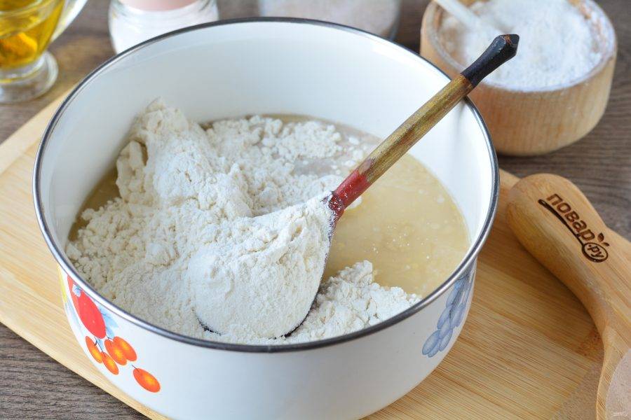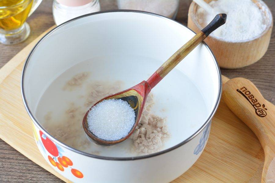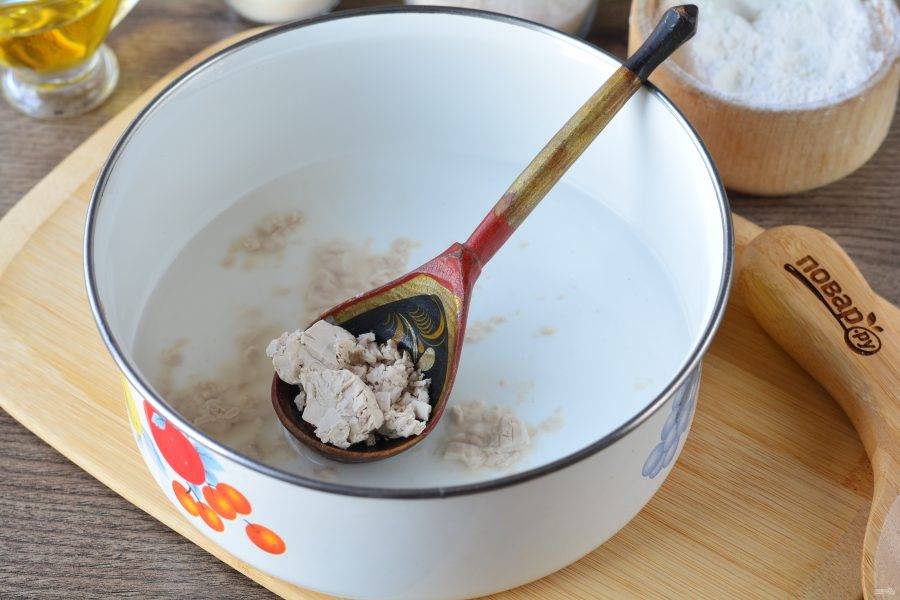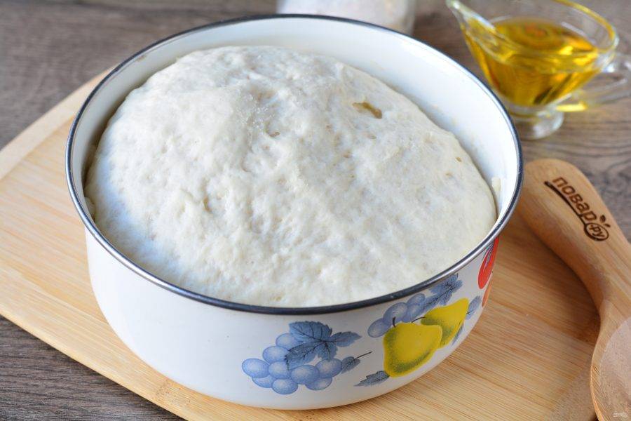 Замесите мягкое тесто, прикройте емкость полотенцем, оставьте на 40 минут подходить.