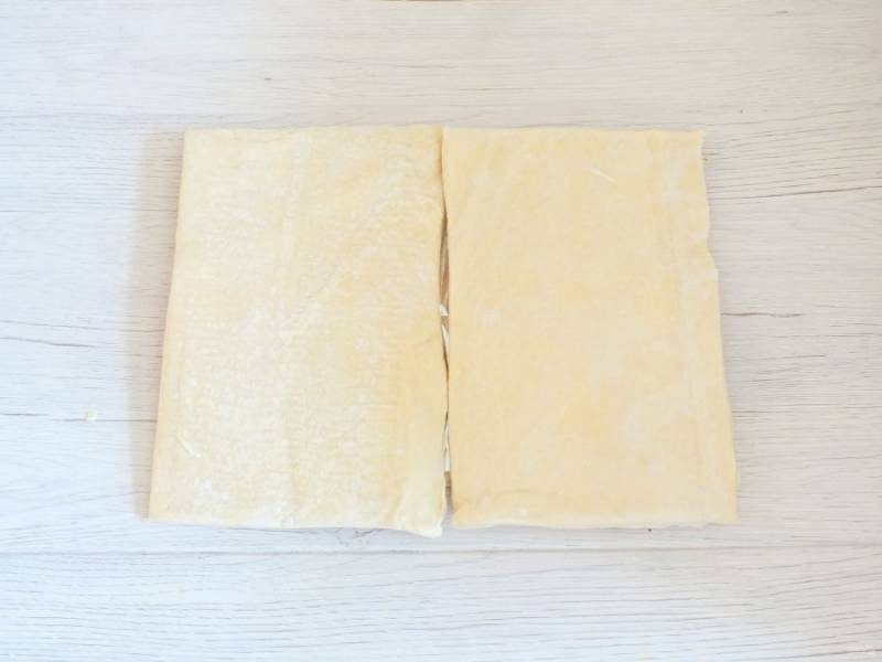 Слоёное тесто разморозьте.