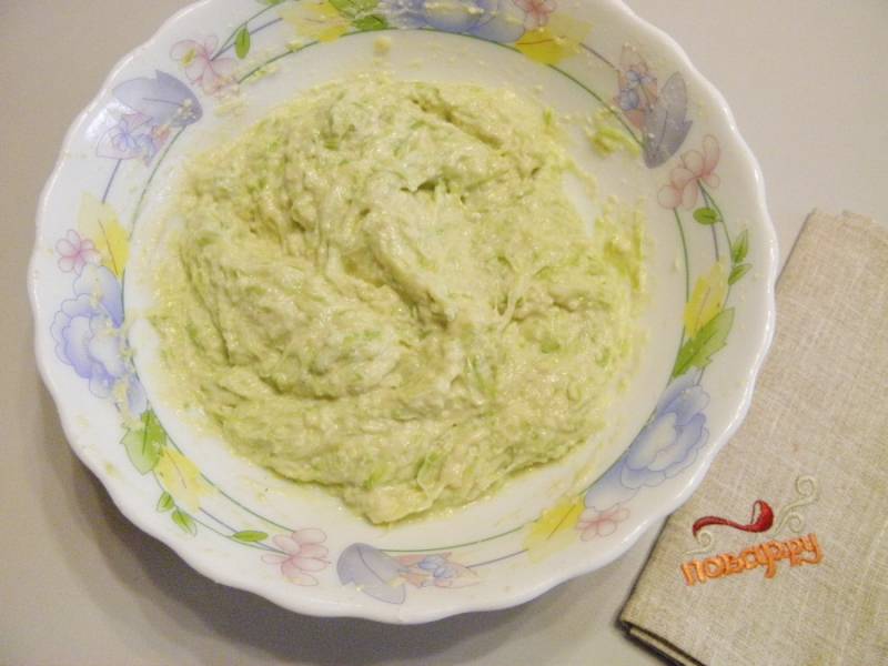 Получившееся кабачковое тесто хорошенько перемешайте.