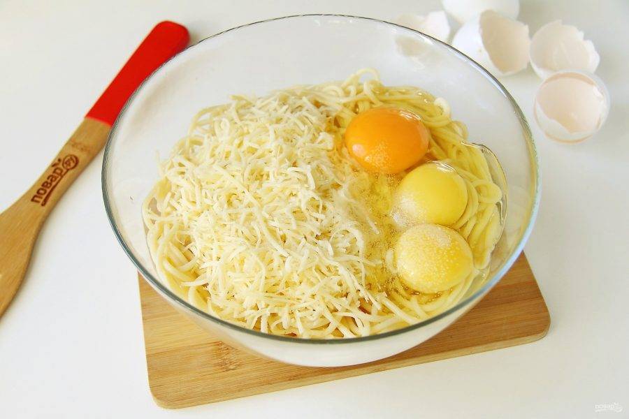 Добавьте к ним 50 гр. тертого сыра, яйца и соль по вкусу.