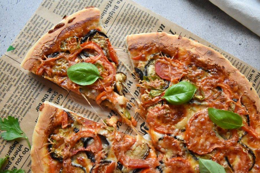 Пицца с баклажанами не уступает по вкусу мясным пиццам, а во многом даже превосходит их. Свежо, пикантно, сочно и необычно! Пробуйте и вы!