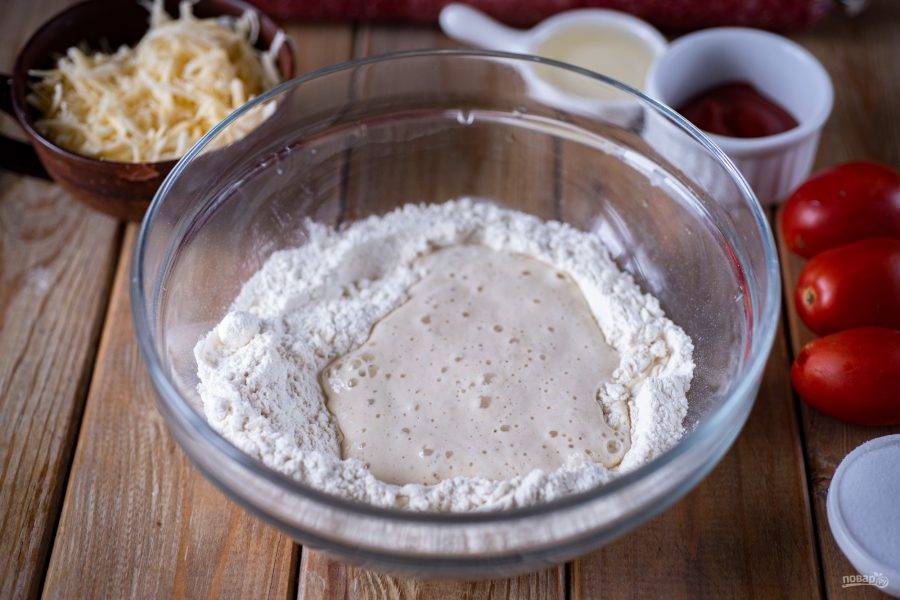 Самое важное в пицце — это тесто, поэтому надо использовать только проверенные рецепты. Предлагаю приготовить тесто на закваске — оно получается, на мой вкус, идеальным.