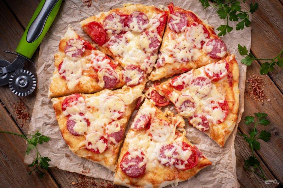 Пиццу сразу же подавайте к столу горячей. Приятного аппетита!