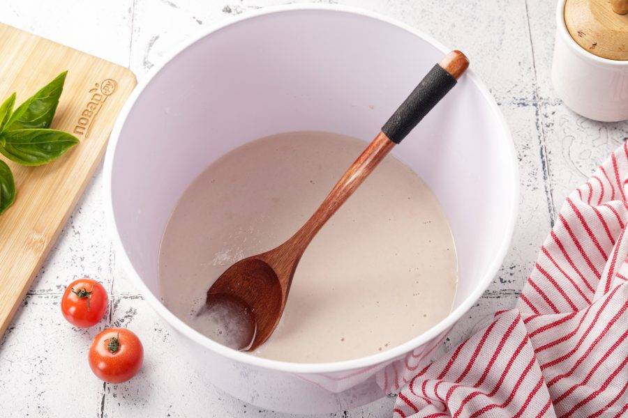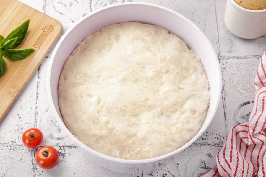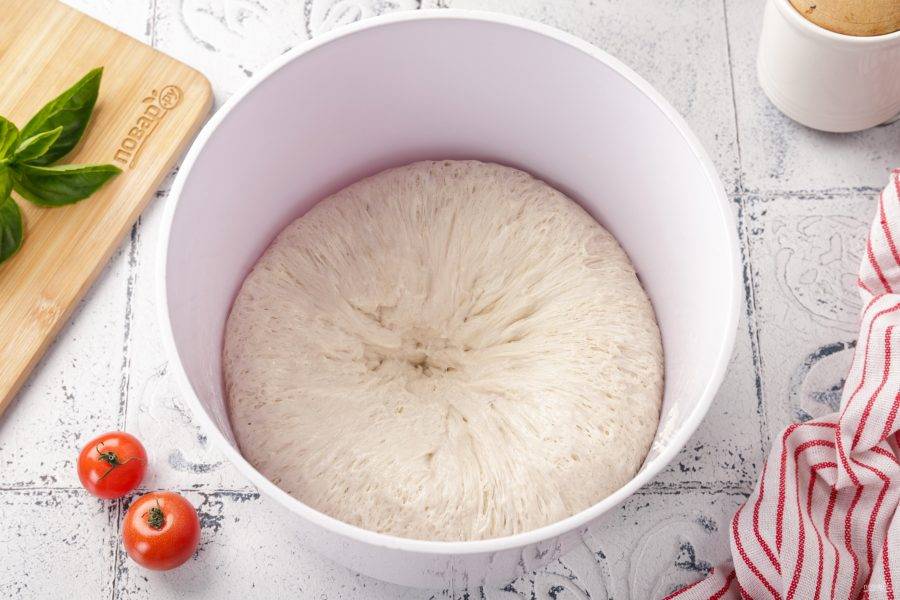 Готовое тесто должно увеличиться в объёме почти в два раза.