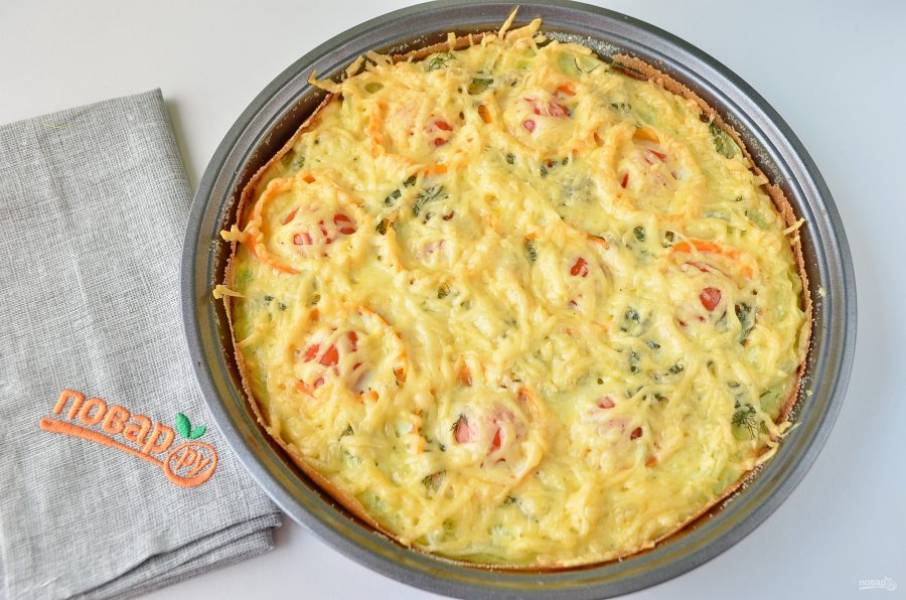 Летом можно побаловать себя любимую легкой овощной пиццей, ничего вредного и калорийного, только овощи и сыр! Чтобы пицца держала форму, используем немного манной крупы. Приступим!