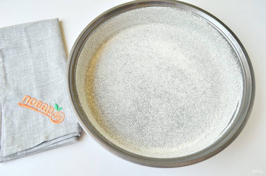 3. Форму смажьте растительным маслом, присыпьте манкой.