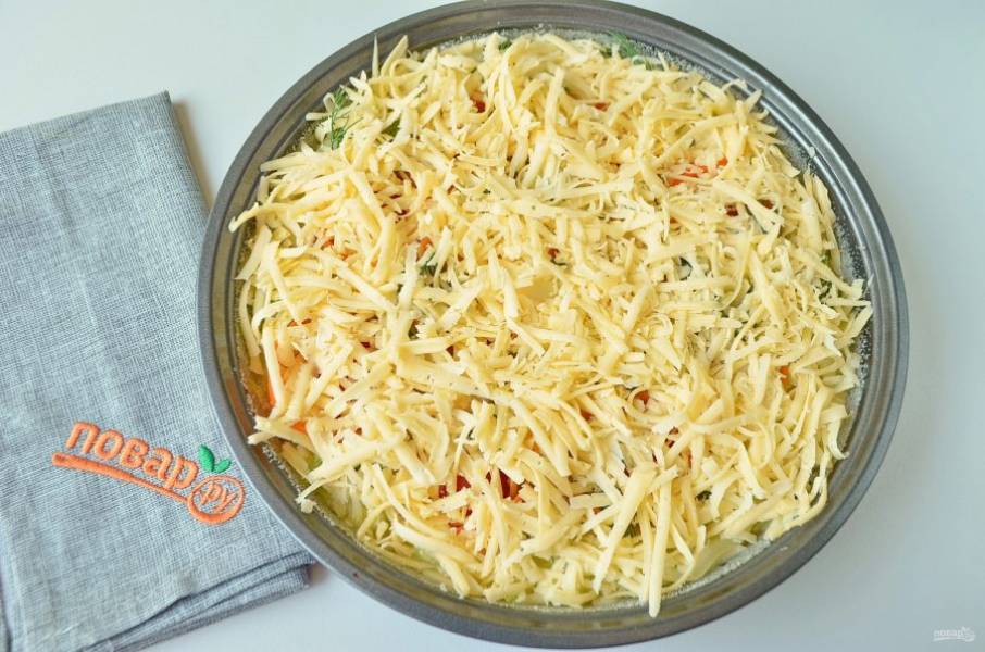 7. Я овощи положите зелень, какая есть под рукой, у меня укроп был. И последний слой – тертый сыр!