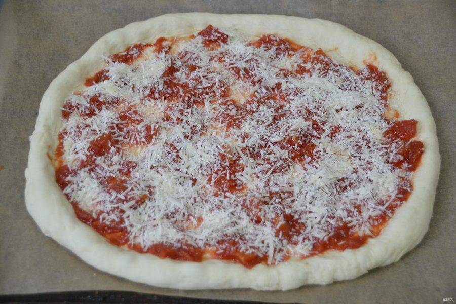 Щедро посыпьте тертым пармезаном.
