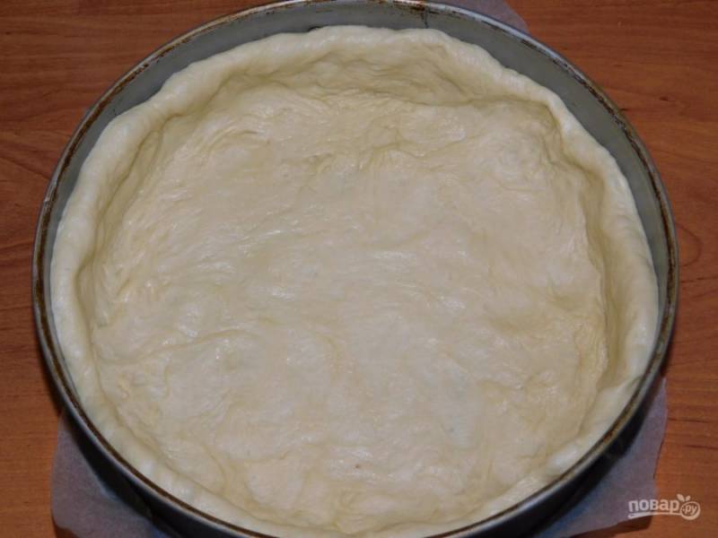 Затем тесто раскатайте и выложите на дно формы, формируя бортики.