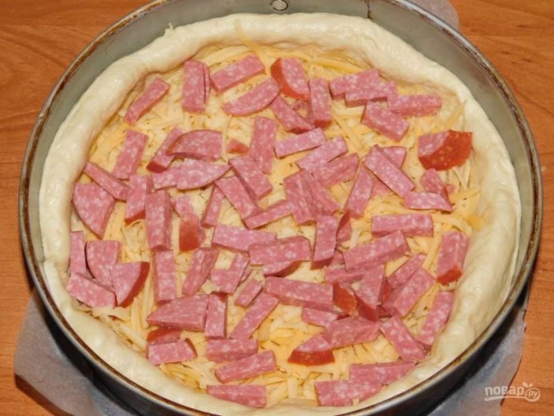 Предлагаю Вам еще один вариант пиццы. Её отличие от привычной нам пиццы в том, что начинка в ней укладывается наоборот – сыром на дно. А готовое блюдо больше напоминает пирог.