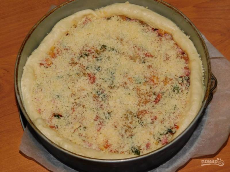 Верх посыпьте тертым пармезаном. Поставьте в духовку, разогретую до 180 градусов, на 30 минут.