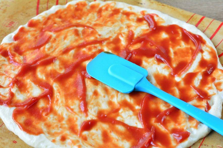 Выпекайте пиццу в разогретой духовке 15-20 минут при температуре 200 градусов.