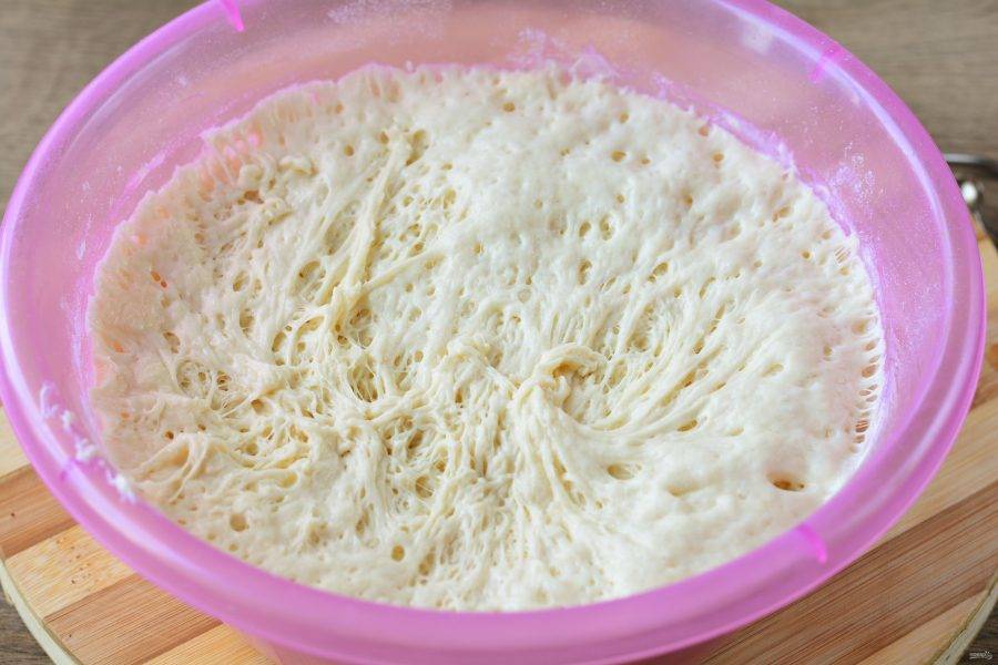 Замесите мягкое тесто. Оставьте его подниматься на 40 минут, прикрыв полотенцем или крышкой.