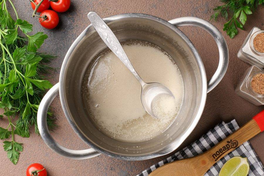 Соедините тёплую воду, сахар и дрожи. Перемешайте и оставьте на 15 минут.