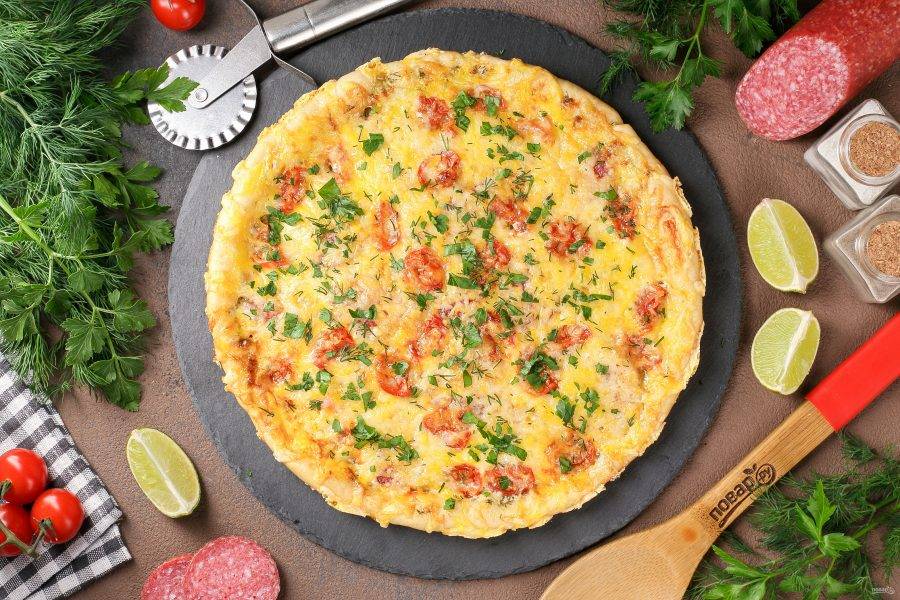 Пицца с горчичным соусом готова. Приятного аппетита!