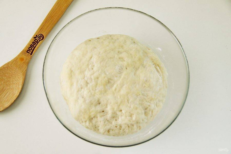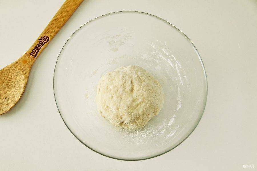 Замесите мягкое, чуть липкое тесто. Соберите его в шар, накройте полотенцем и уберите миску в теплое место примерно на 1 час.