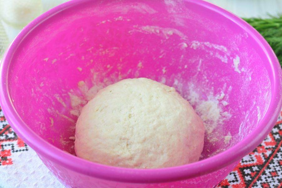Замесите тесто и оставьте под полотенцем на 1 час.