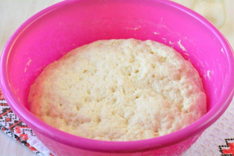 Тесто стало пышным, увеличилось в 3 раза, обомните его.