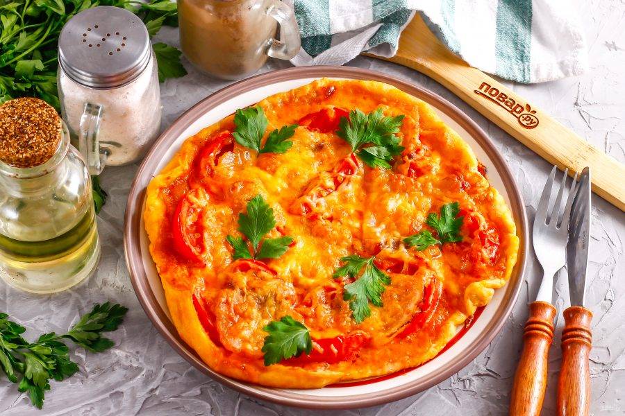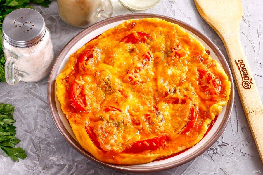 Подайте пиццу к столу теплой. Помните, что при остывании блюда жир застывает и становится белым.