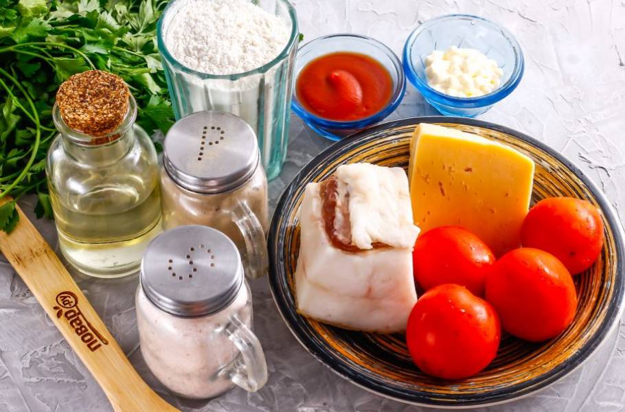 Сало нарежьте тонкими ломтиками. Не крупно, так как оно тогда не успеет пропечься! Выложите на помидорную нарезку.