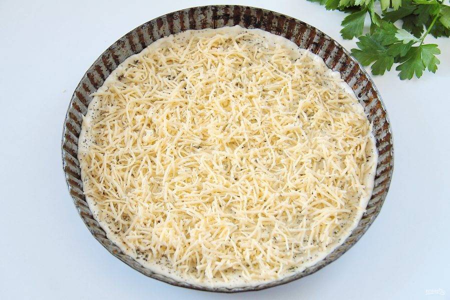 8. У меня было два вида сыра. Первый сорт, что потверже, натрите и положите первым слоем.