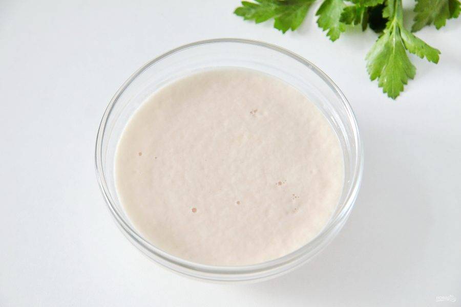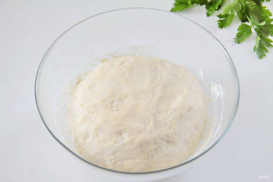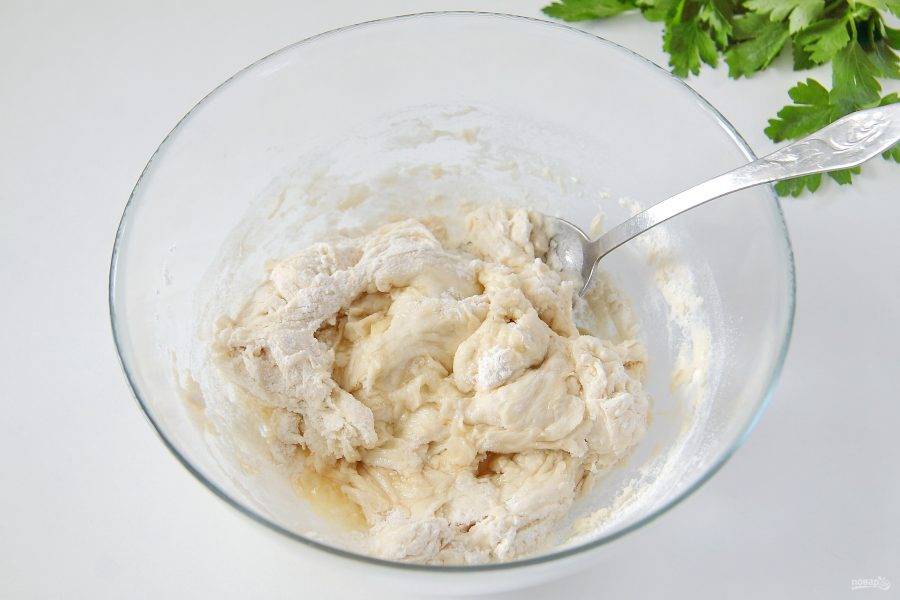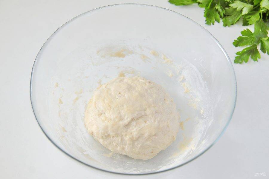 5. Замесите руками мягкое и чуть липкое тесто, соберите его в шар, накройте полотенцем и уберите в теплое место.