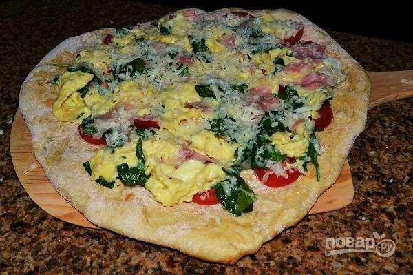 На завтрак, в качестве сытного перекуса или даже вместо основного хочу предложить вам это классное блюдо. Покажу, как приготовить пиццу с сыром и ветчиной, шпинатом и яйцом. Оригинально, согласны?