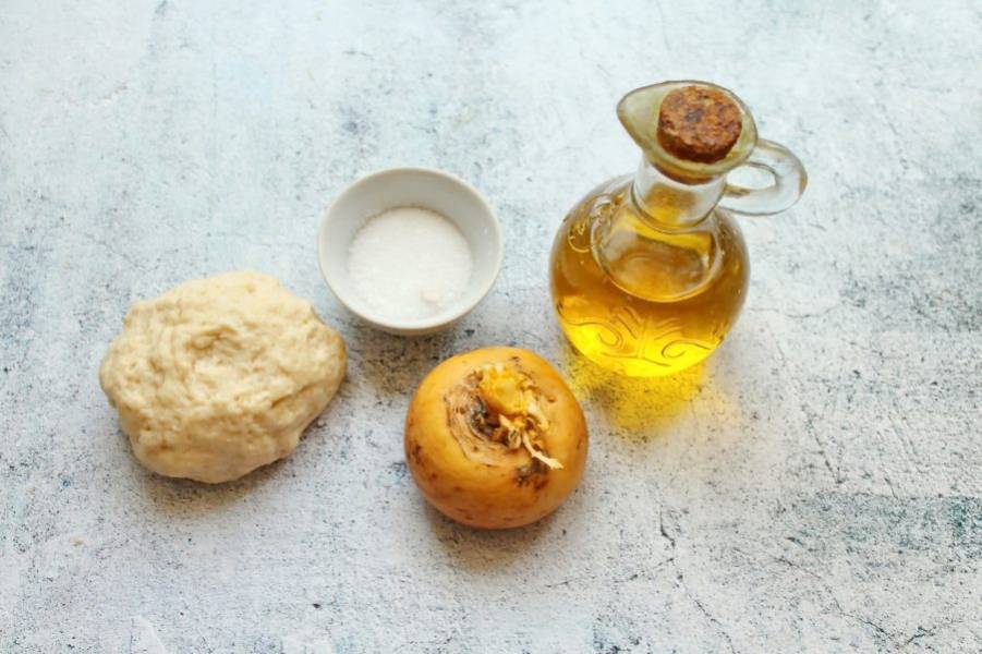 Подготовьте все необходимые ингредиенты для приготовления пиццы со сладкой репой.