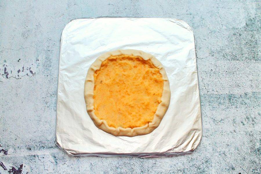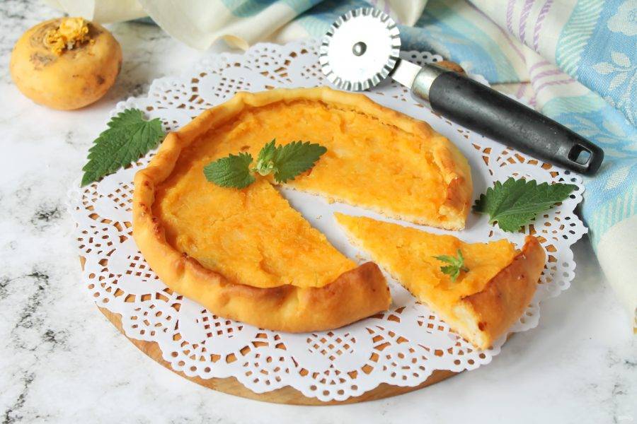 Раскатайте тесто для пиццы в круг, выложите начинку из репы и разровняйте. По краю сделайте бортики. Поставьте пиццу со сладкой репой в горячую духовку и выпекайте при температуре 180 градусов в течение 15-20 минут, до готовности. Готовую пиццу достаньте из духовки и сразу подавайте к столу.